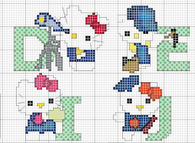 Aqui os pongo unos patrones perfectos para hacer llaveros de punto de cruz. SI no sabeis cómoo se hace, o quereis tomar ideas, podeis echarle un vistazo a este blog